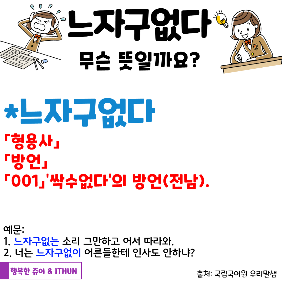 오늘은 '느자구없다'에 대해 정리해 보았다.