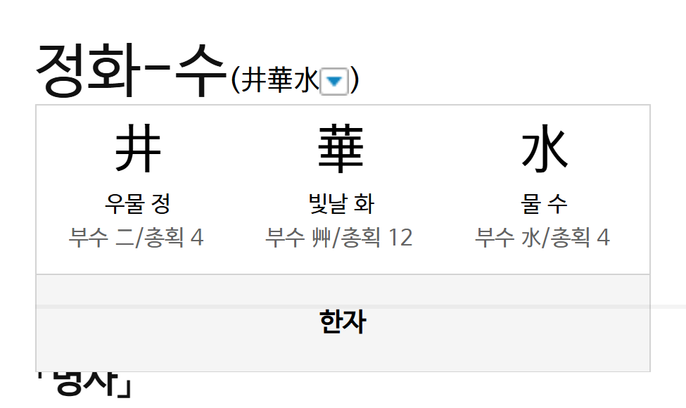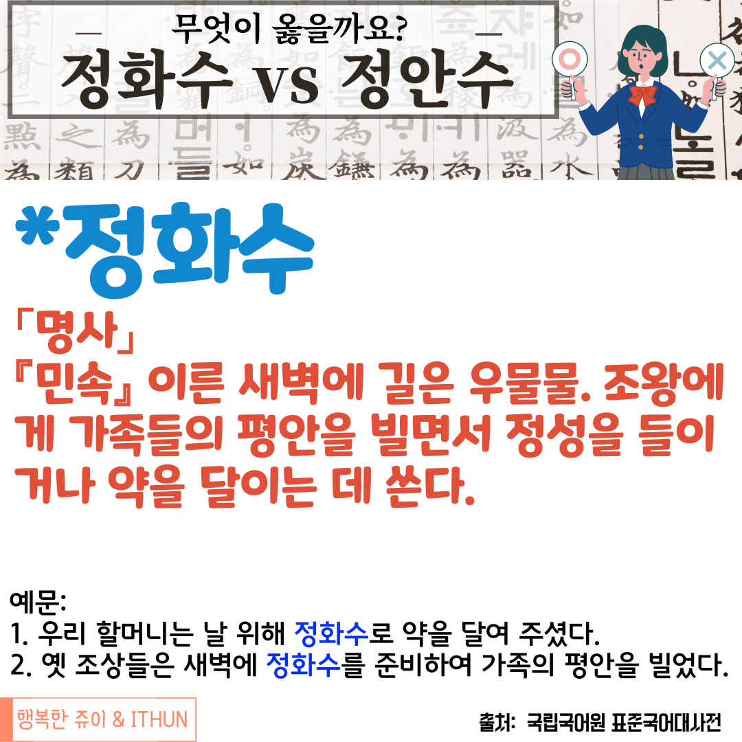 '정한수'도 '정화수'로 고쳐 사용해야 한다.