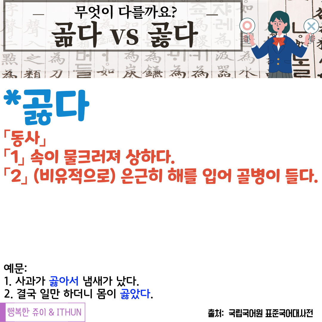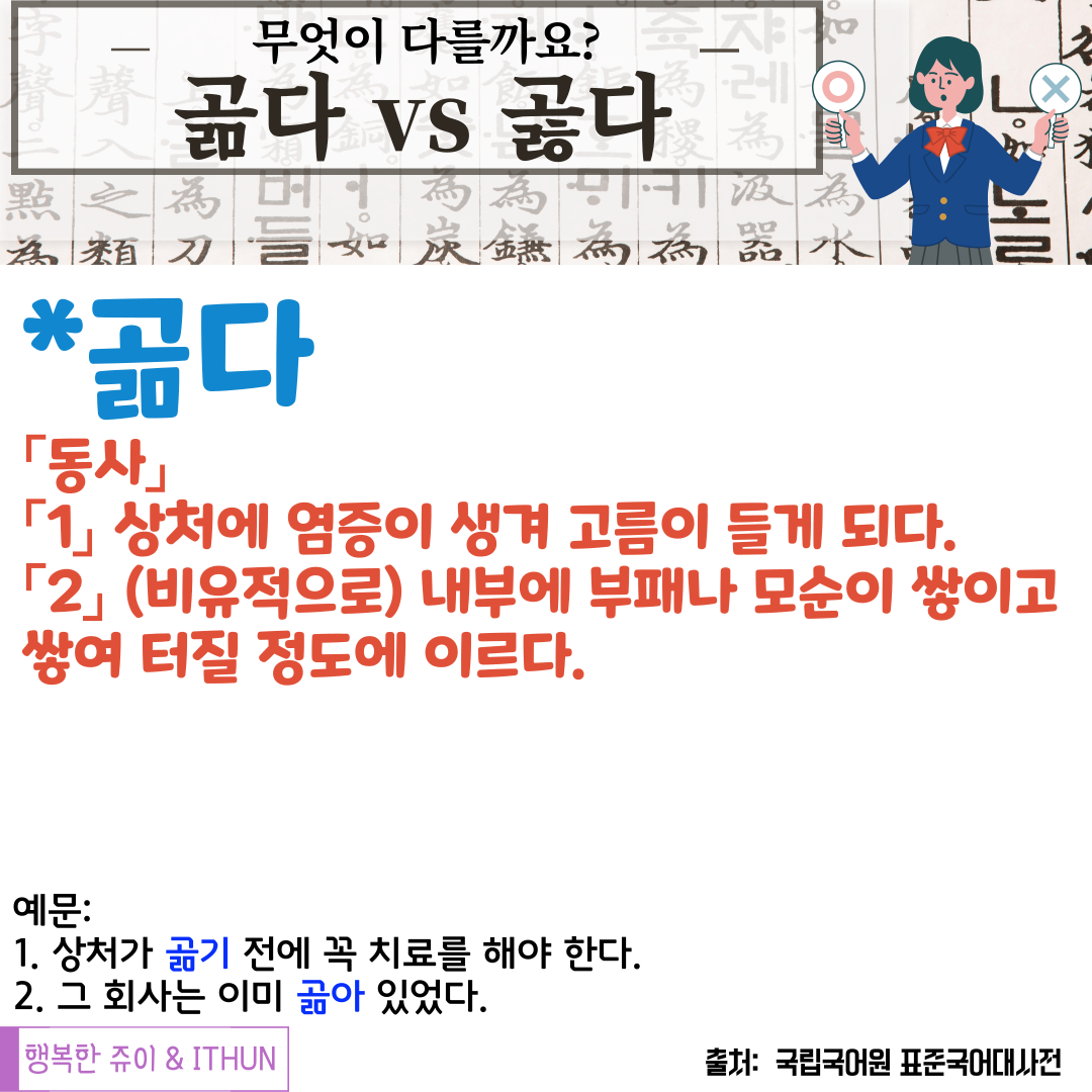 오늘은 '곪다'와 '곯다'를 정리해 보았다.