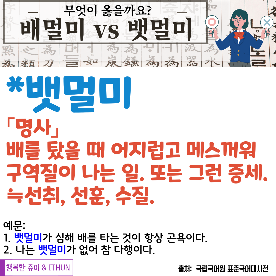 이제는 '뱃멀미'로 바르게 사용하고