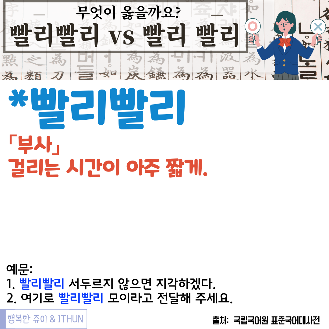 '빨리빨리'가 하나의 단어(부사)로 나와 있을 줄은 몰랐다.