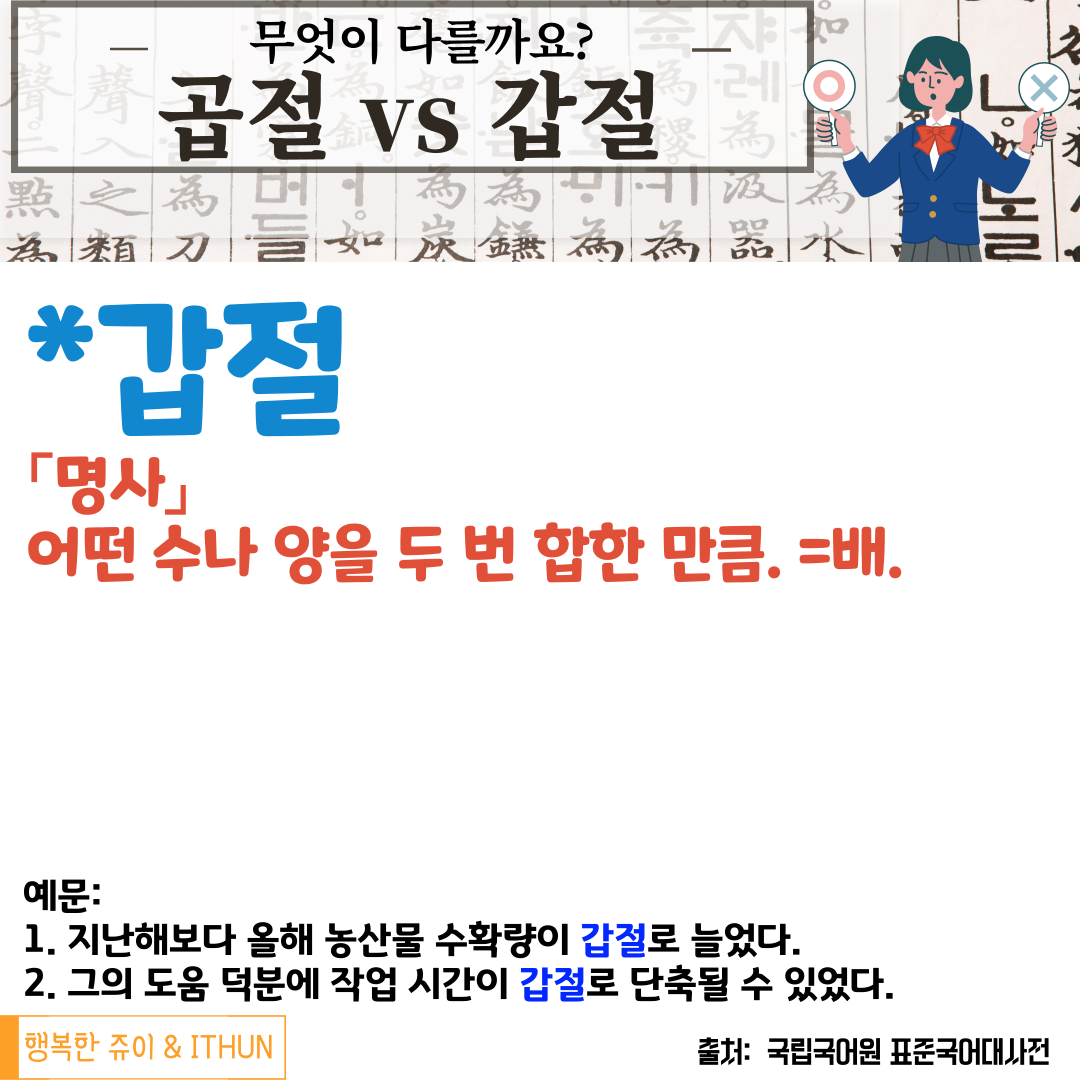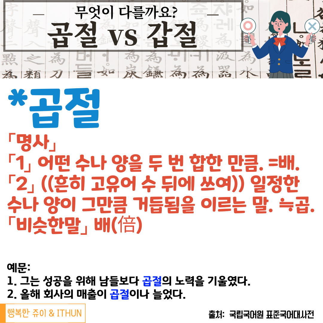 오늘은 '곱절'과 '갑절'에 대해 정리해 보았다.