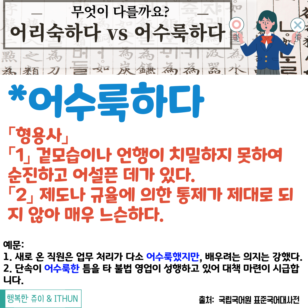 문맥상 '어수룩하다'가 들어가야 맞다.