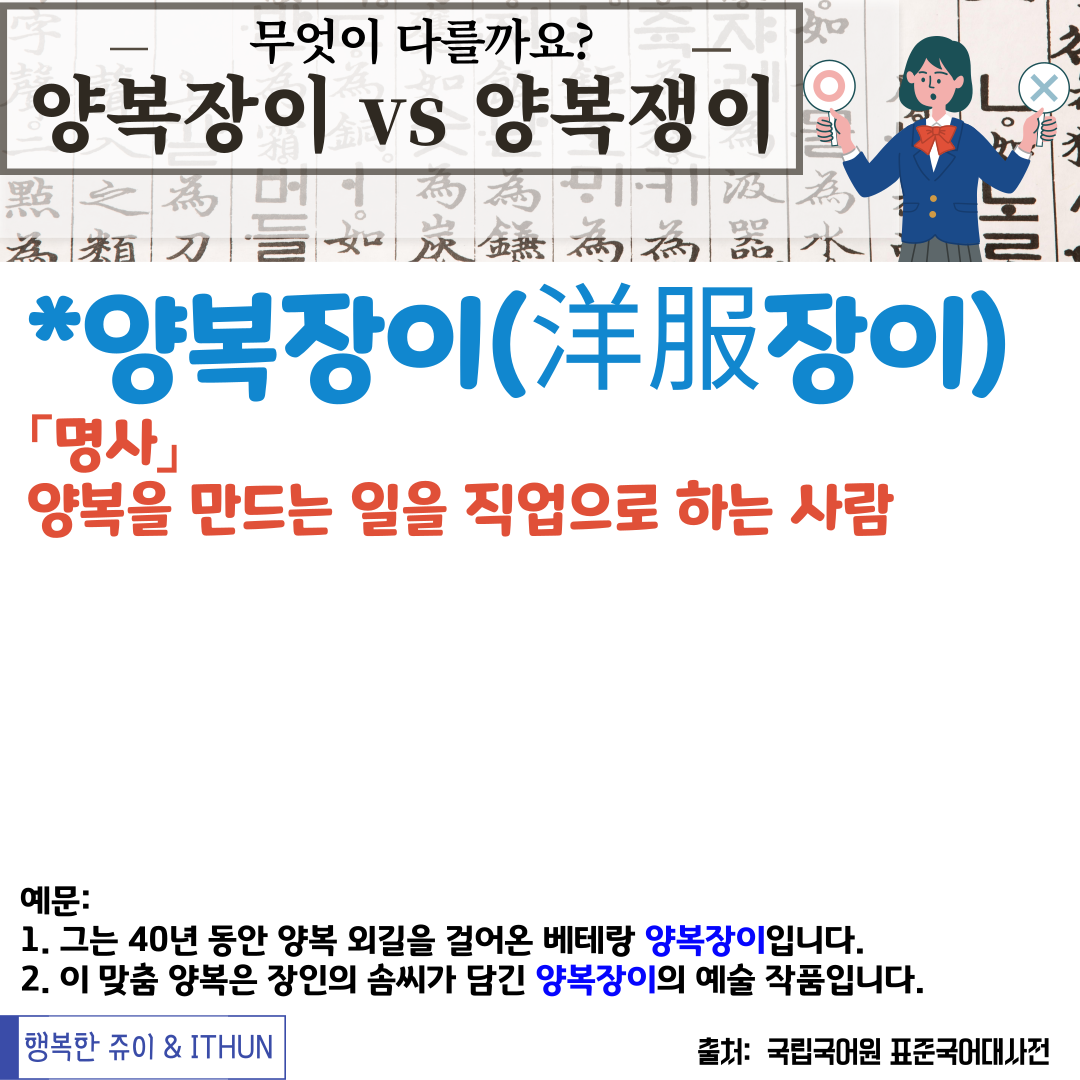 오늘은 '양복장이'와 '양복쟁이'에 대해 정리해 보았다.