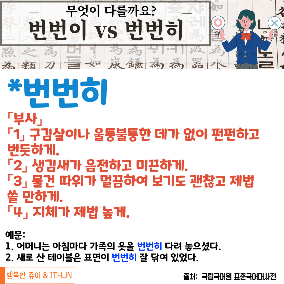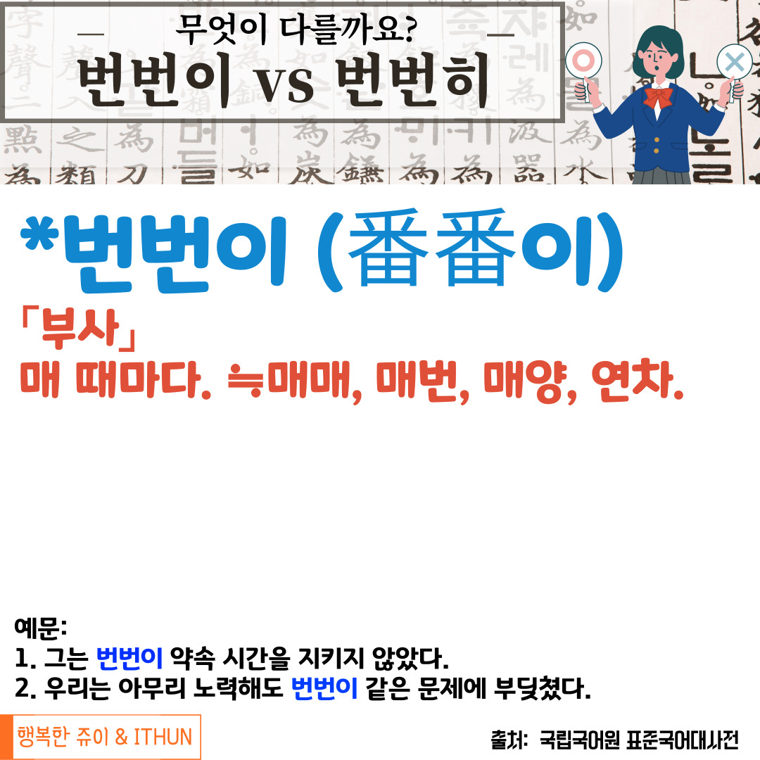 오늘은 '번번이'와 '번번히'에 대해 정리해 보았다.