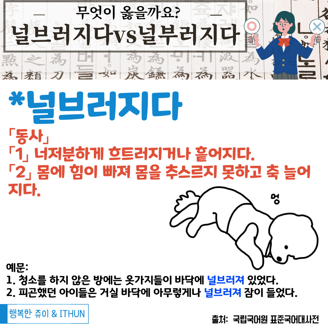 오늘은 '널브러지다'에 대해 정리해 보았다.
