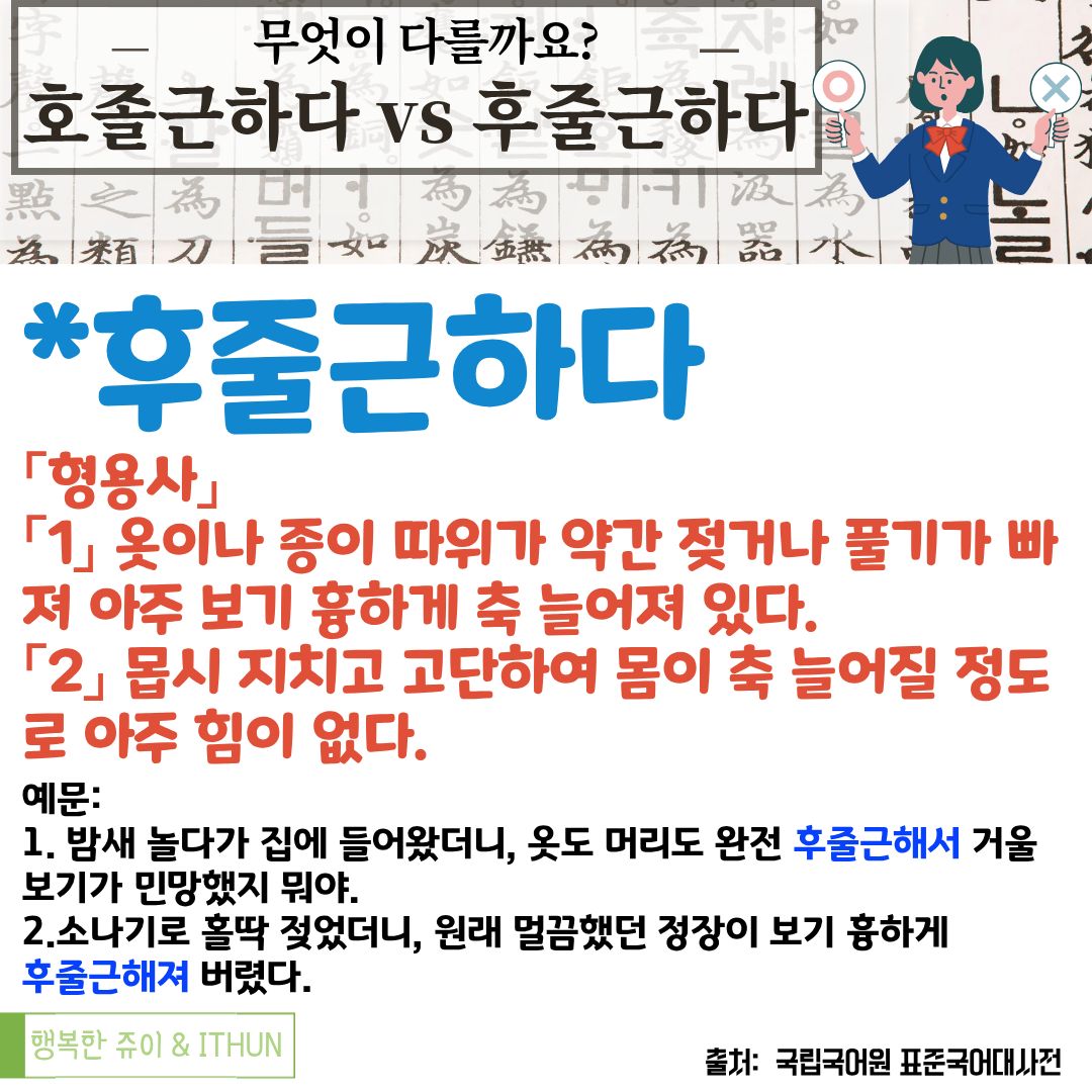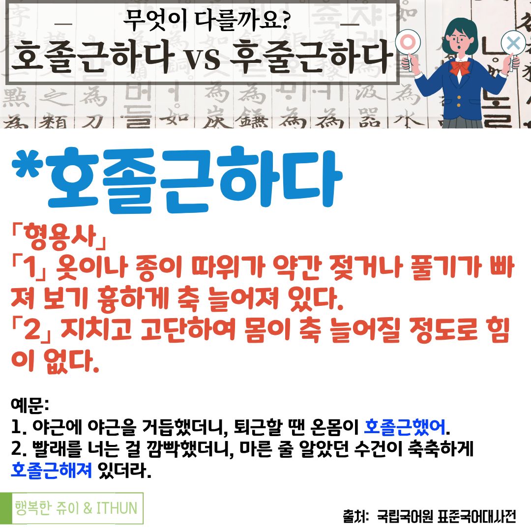 오늘은 '호졸근하다'와 '후줄근하다'를 정리해 보았다.