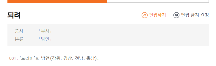 '도리어'의 방언(강원, 경상, 전남, 충남)