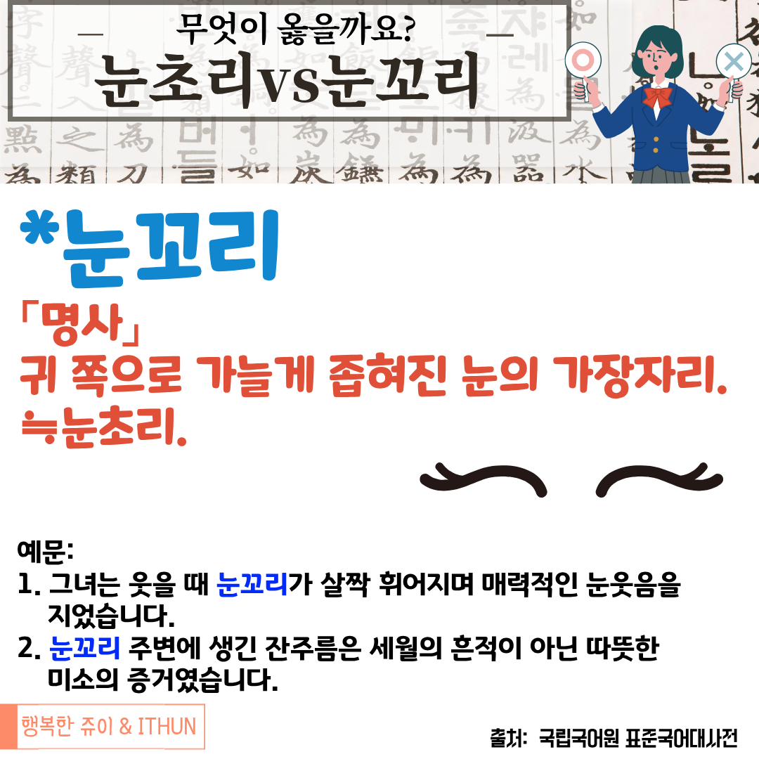 오늘은 '눈초리'와 '눈꼬리'에 대해 정리해 보았다.