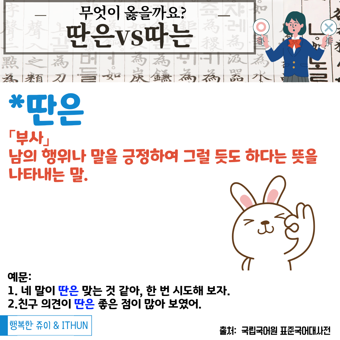 그러므로 '따는'으로 착각해서 사용하기 쉬울 것 같다.