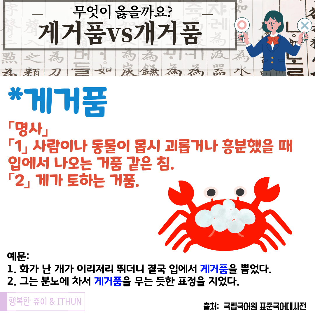- 어항 속 게가 이상한 짓을 하더니 갑자기 게거품을 내뱉었다.