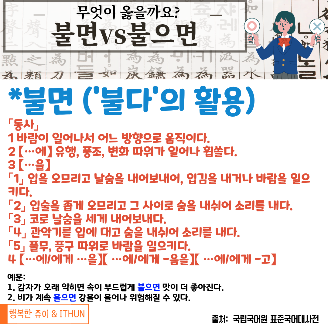 오늘은 '붇다'의 활용인 '불으면'에 대해 정리해 보았다.
